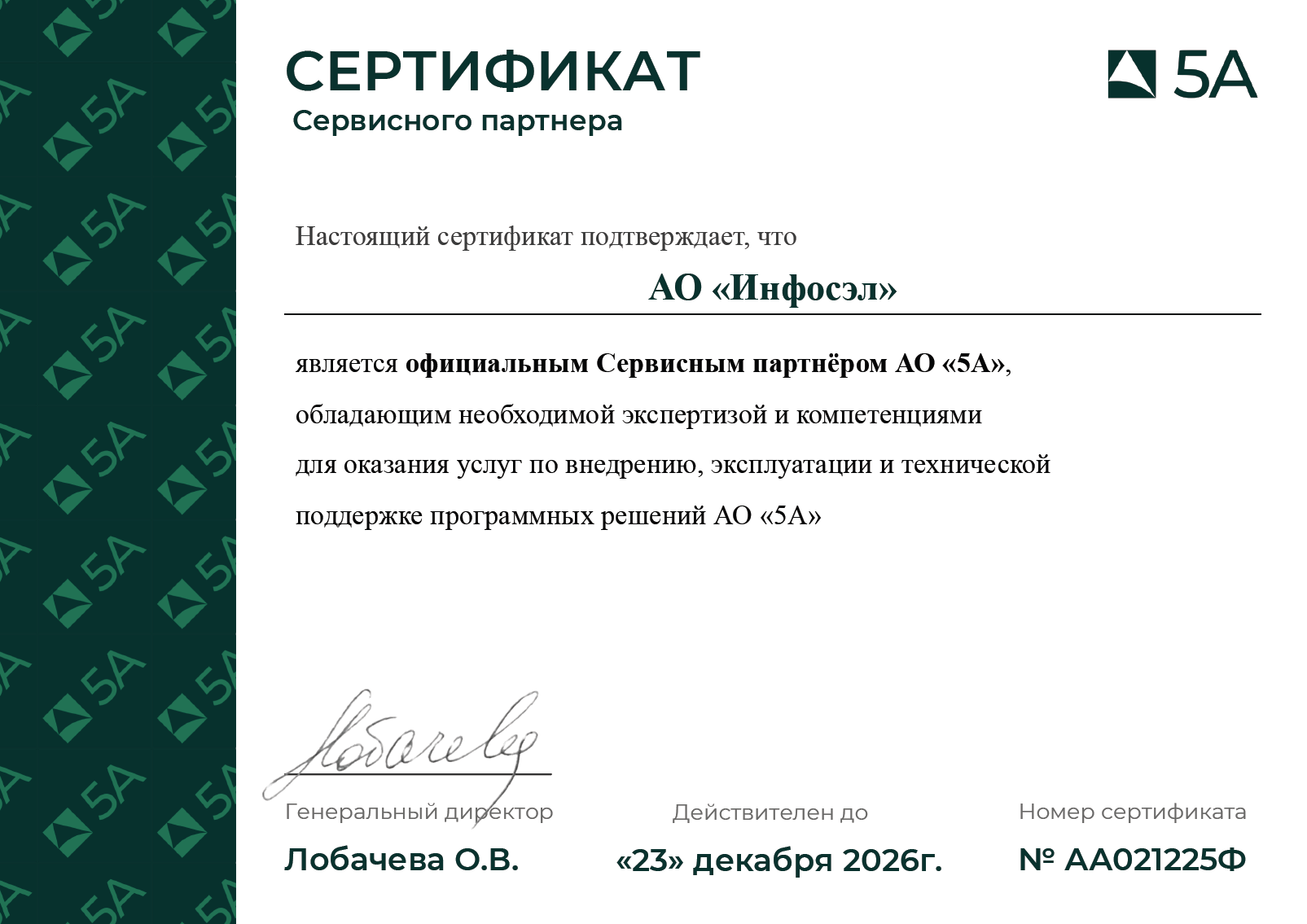 Системный интегратор "Инфосэл" получил статус официального Сервисного партнёра компании "5А" - российского разработчика программного обеспечения, специализирующегося на системах управления IT‑инфраструктурой.